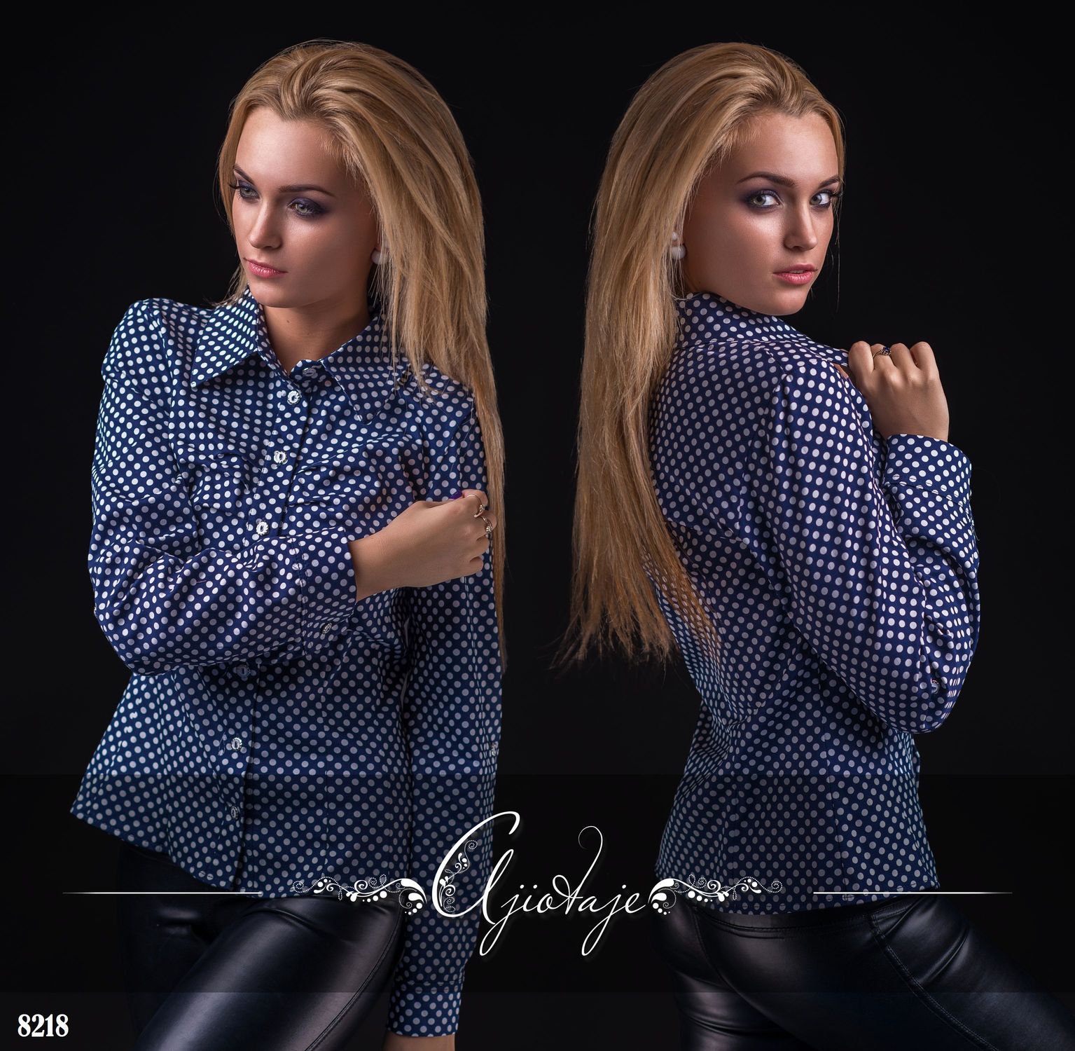 Цвет - белый горошек, крупные белые кружочки, синяя основа.