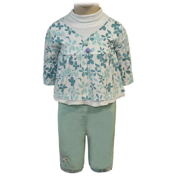 Нарядный, одновременно модный комплект для юной крошки из 2-х предметов: туника, бриджи. Туника полностью растягивается по спинке с помочью кнопок в цвет. По талии проложена сборка, воротник выполнен в виде хомутика что придает изысканный вид детскому изделию. По низу рукавов вшита тонкая резинка для придания легкой сборки. По центру 2 декоративные пуговицы. По талии и по низу капри проходит широкая удобная резинка, изнутри подкладочная ткань. В нижнем уголке притаился веселый птенчик!