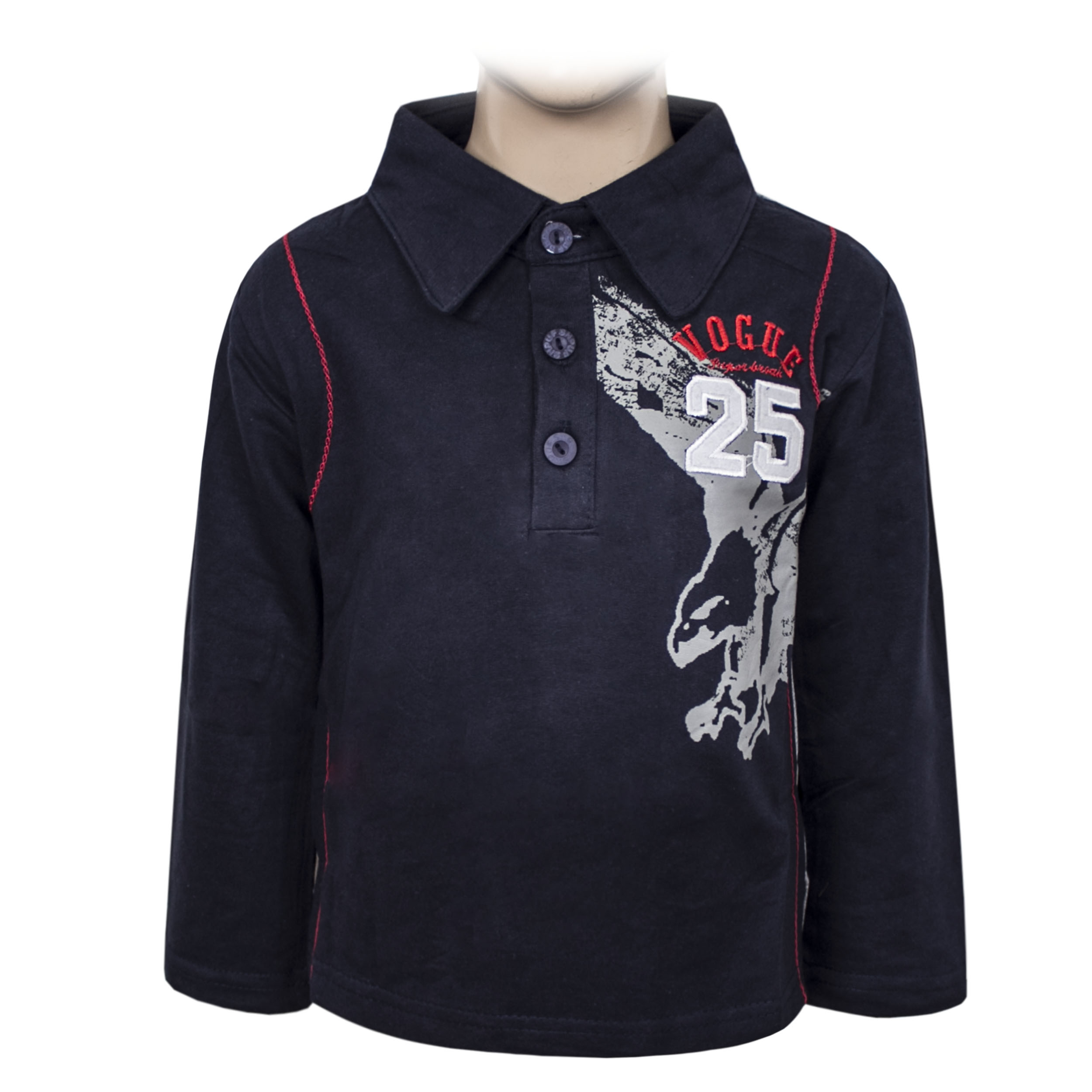 Легкая хлопковая кофта с длинными рукавами и отложным воротничком – отличный вариант для повседневной носки. Модель дополнена застежкой с тремя пуговицами и украшена надписями и изображением хищной птицы с левой стороны. Изделие доступно в разных цветах.