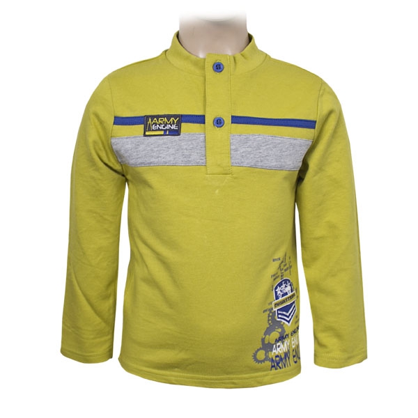 Спортивная кофта для мальчика с цветными поперечными вставками. Кофта застегивается по вороту на две пуговицы. В нижней части изделия расположен модный принт. Отличный вариант для повседневной носки. Модель представлена в двух цветах.