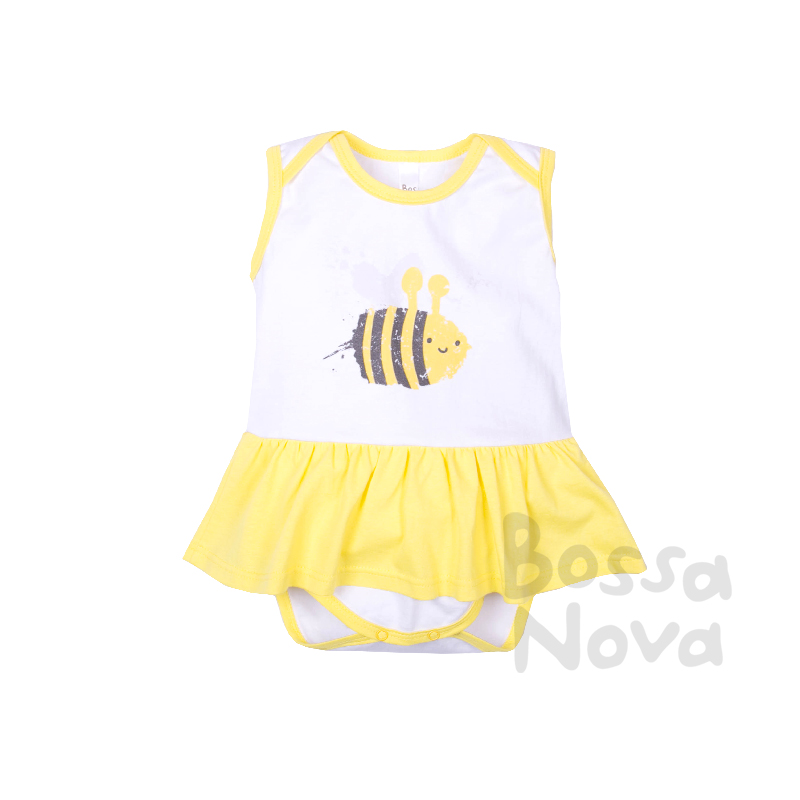 Однотонный боди для девочки с принтом. Изделие отрезное по талии с юбкой. Горловина, проймы, ножки обработаны бейкой. Застежка на кнопки. Замечательно подойдёт для детского ежедневного гардероба.