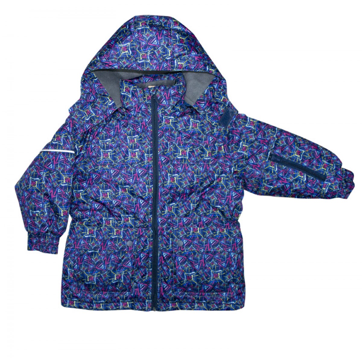 Спереди 2 объемных кармана с клапанами на кнопках. В рукаве функциональный карман на молнии. Ширина по линии талии и по низу куртки регулируется с помощью фиксаторов.