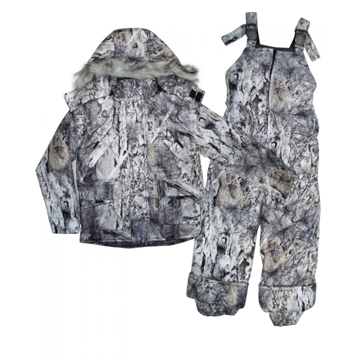 Куртка утеплённая с отстёгивающимся капюшоном с опушкой, с застёжкой на молнию, с ветрозащитным клапаном, два верхних прорезных кармана с листочкой и два нижних накладных кармана с клапанами. Трикотажные манжеты внутри рукавов. Подкладка флис. Утеплённый полукомбинезон с регулируемыми брителями с застёжкой на молнию и боковыми накладными карманами, эластичной тесьмой по талии.