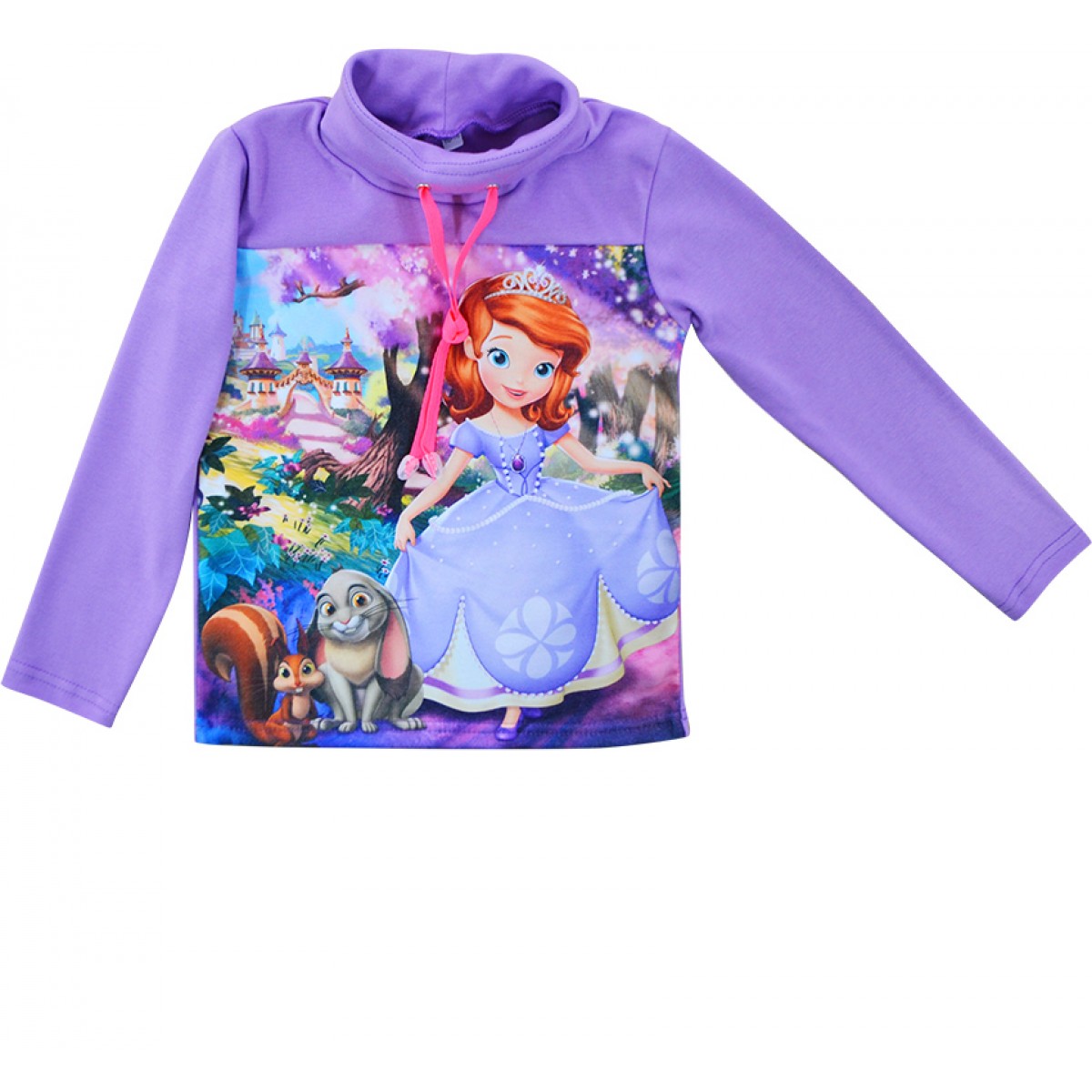 Яркий принт, широкий воротник со шнурками