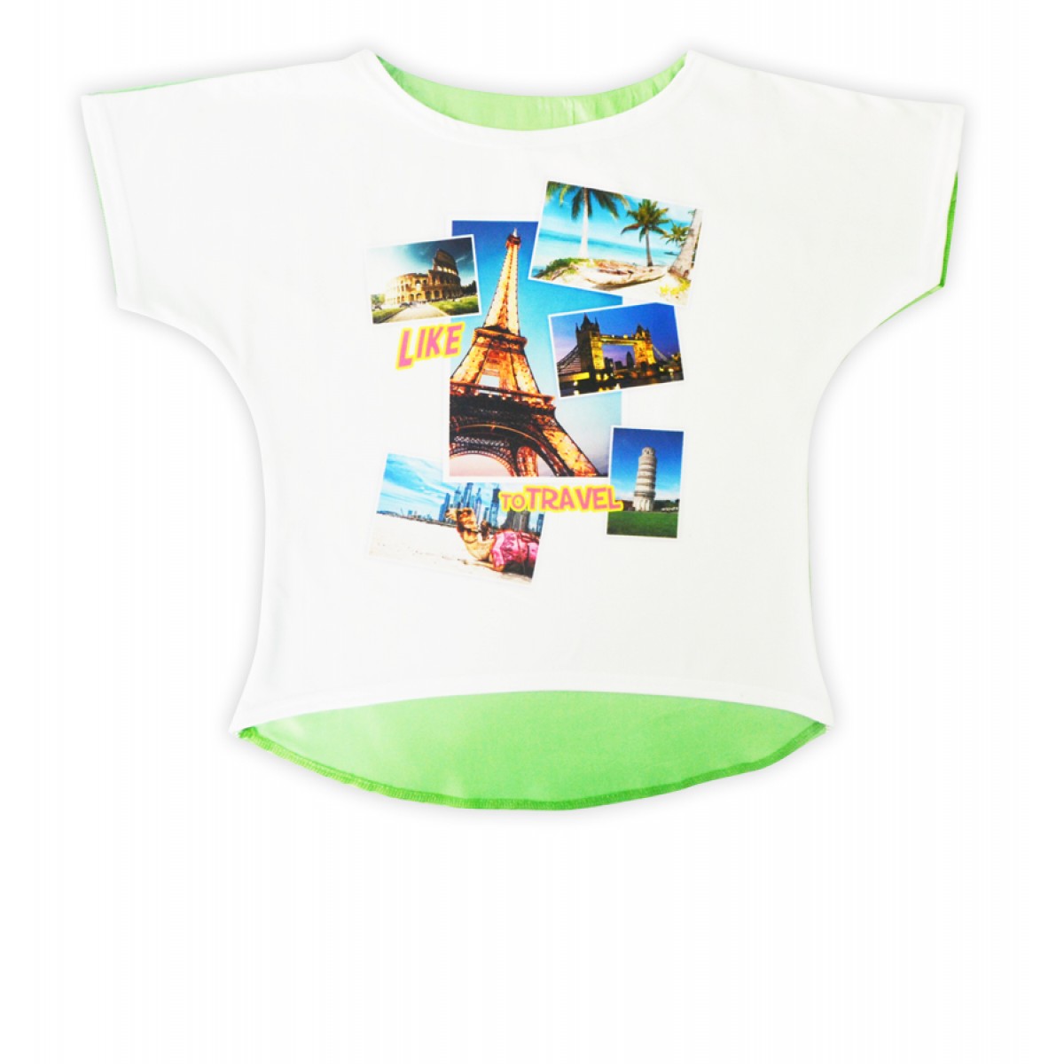 Перед блузы трикотаж с эксклюзивным дизайнерским принтом, спинка из легкого тонкого атласа ярких летних тонов