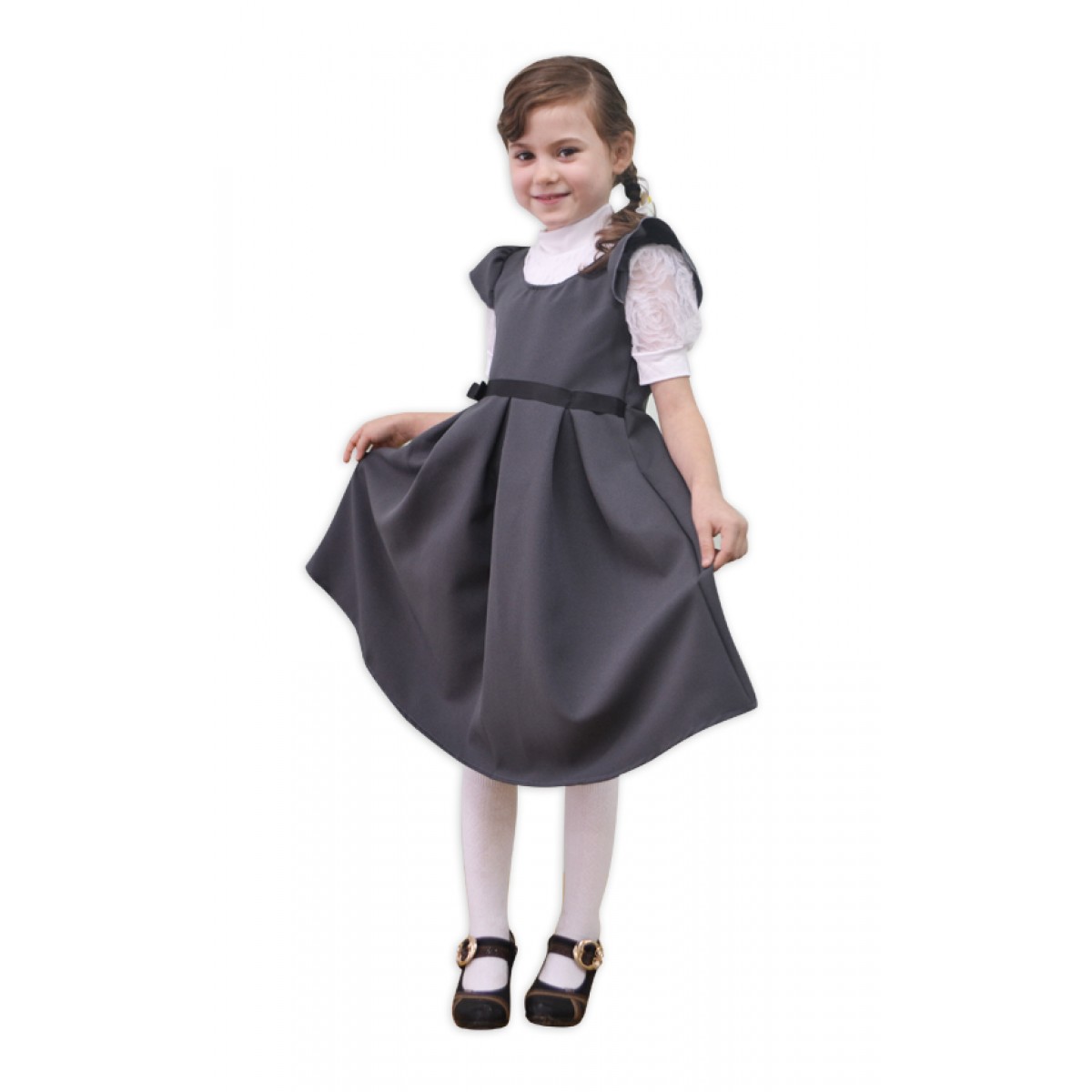 Школьный сарафан из габардина представлен в трех расцветках - синий, серый, черный. Сарафан с молнией в среднем шве спинки. Ткань обладает малой сминаемостью