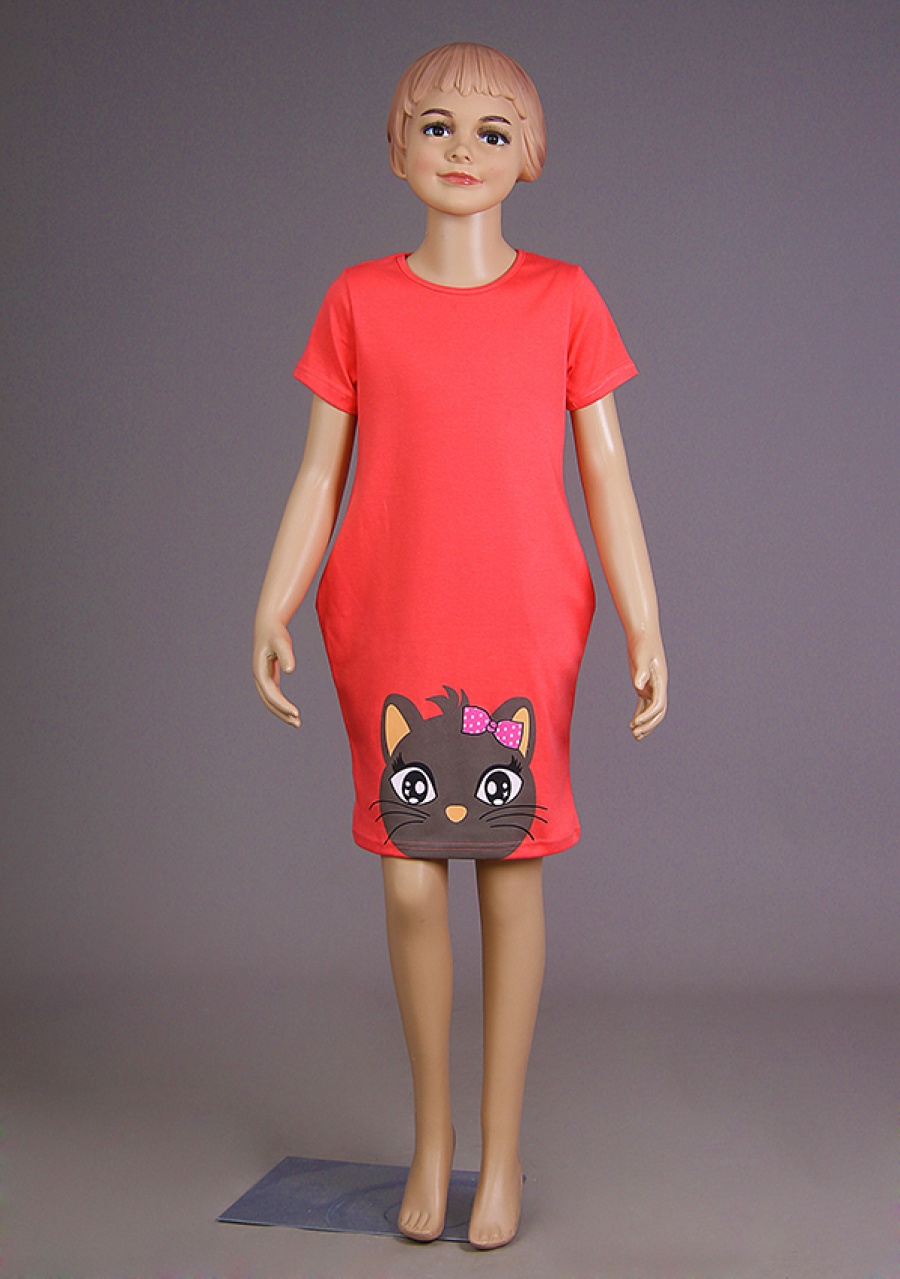 Прекрасное платье с невероятно яркой расцветкой и очаровательным двухсторонним принтом "Котик" понравится Вам своим качеством, аккуратностью и удобством. Короткий рукав уместен для теплого времени года или помещения.