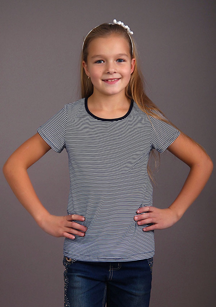 Футболка в узенькую полосочку отлично подойдет любому ребенку! Высокое качество пошива и натуральная ткань делает вещь незаменимой в гардеробе.