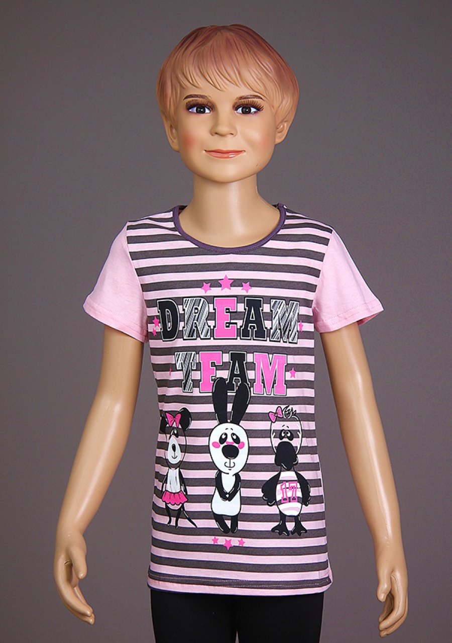 Фирменный принт "Дрим Тим" отлично подойдет как девочке, так и мальчику. Футболка прекрасно сидит и отлично носится в любое время года.