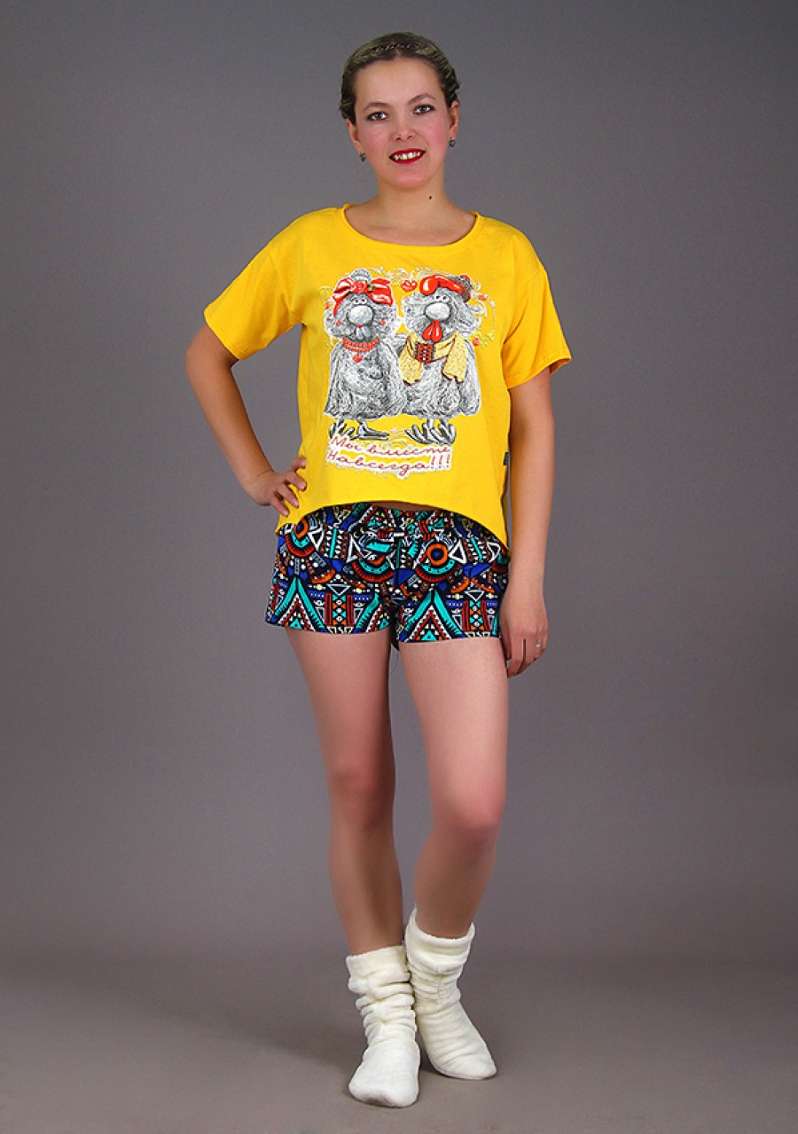 Порадуйте себя и близких отличным домашним костюмом с принтом "Игрушки". Оригинальный крой изделия, очаровательные шорты модели "Милашка" с бантиком делают костюм потрясающе привлекательным и милым.
