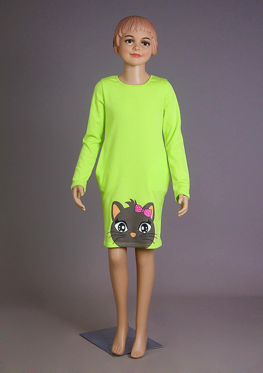 Прекрасное платье с невероятно яркой расцветкой и очаровательным двухсторонним принтом "Котик" понравится Вам своим качеством, аккуратностью и удобством. Длиный рукав подойдет для прогулок на улице в прохладное время года, для хорошо проветриваемых помещений.