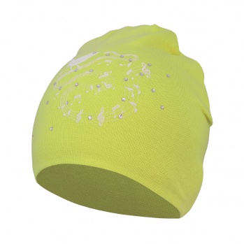 Красочная шапочка для девочки на межсезонье. Шапка декорирована аппликациями и россыпью сверкающих страз. Модель выполнена плотной мелкой вязкой из качественной мягкой пряжи. Такая шапочка удобна и приятна даже для долгой ежедневной носки и подходит к любой верхней одежде ребенка. Есть разные цвета.
