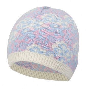 Очаровательная шапочка для девочки выполнена в пастельной цветовой гамме. Модель украшена нежным цветочным узором. Нижняя часть отделана резиночкой для удобной посадки. Такой головной убор подойдет к любой верхней одежде и на любой случай. Есть разные цвета этой модели.