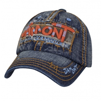 Яркая бейсболка в стиле деним для мальчика. Кепка украшена яркой вышивкой и контрастной отстрочкой по краям. Длинный козырек защитит от солнца глаза ребенка.