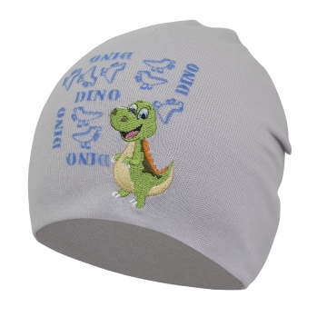 Забавная и оригинальная шапочка для мальчика. Модель украшает яркая аппликация с изображением динозаврика. Шапка выполнена из хлопка мелкой вязкой. Она не колется, не спадает на глаза и удобна даже для долгой носки. Имеются разные расцветки.