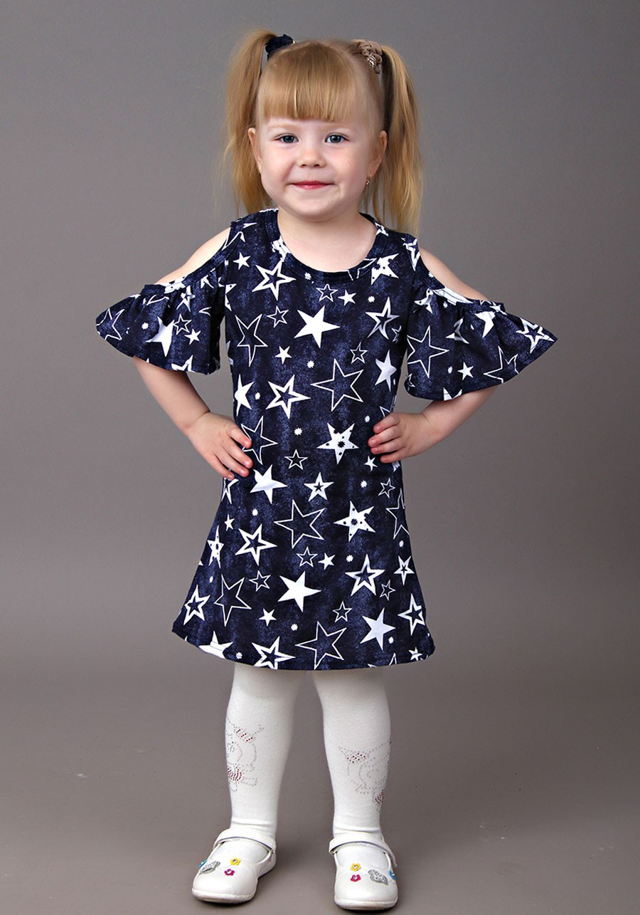 Безудержно милое, невозможно очаровательное и бесконечно красивое платье для маленьких модниц. Оформление в виде декоративных разрезов на рукавах подчеркнет плечико малышки, а слегка расширенный снизу подол не будет мешать ребенку двигаться и играть. Что говорить, натуральная ткань, из которой изготавливается платье, полностью гипоаллергенна и сохраняет свой цвет и форму после многих стирок.