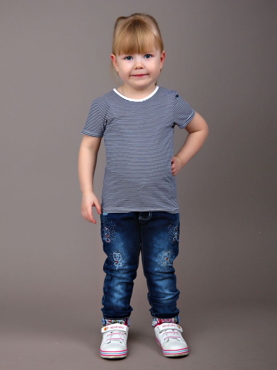 Универсальная детская футболка в узкую полоску с белой окантовкой, подшитым рукавом и подолом. Вещь, которая должна быть в гардеробе каждого ребенка.
