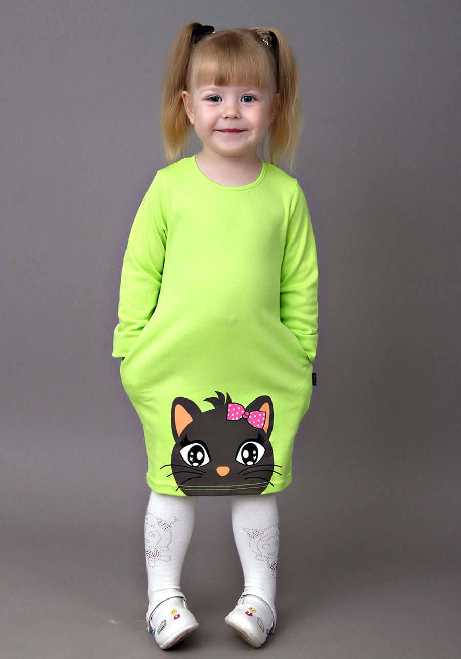 Прекрасное платье с невероятно яркой расцветкой и очаровательным двухсторонним принтом "Котик" понравится Вам своим качеством, аккуратностью и удобством. Длиный рукав подойдет для прогулок на улице в прохладное время года, для хорошо проветриваемых помещений.