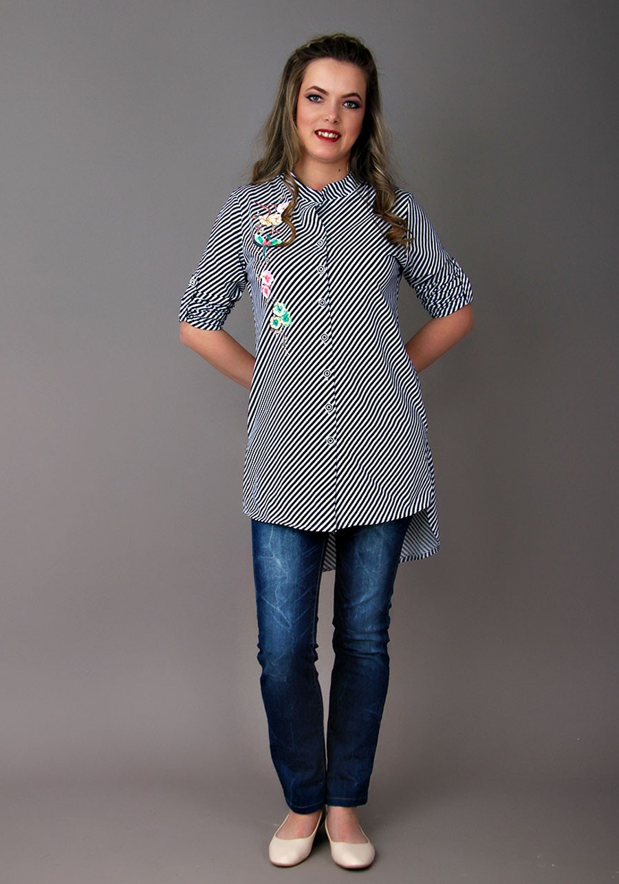 Стильная рубашка - вещь, необходимая любой девушке. Как говорят, "И в пир, и в мир" - в таком предмете одежды можно выйти в гости, на прогулку или работу. Идеальная - длинный рукав может с легкостью превратиться в рукав три четверти, благодаря пуговке и планке; удлиненная спинка изделия позволяет носить рубашку как с шортами, так и с джинсами, а также с абсолютно любой обувю; принт "Сакура" придется по вкусу любой ценительнице красоты и нежности в одежде. Порадует Вас удивительное качество ткани и пошива - при правильном уходе рубашка не теряет формы и цвета, принт не линяет и не меняет цвета.