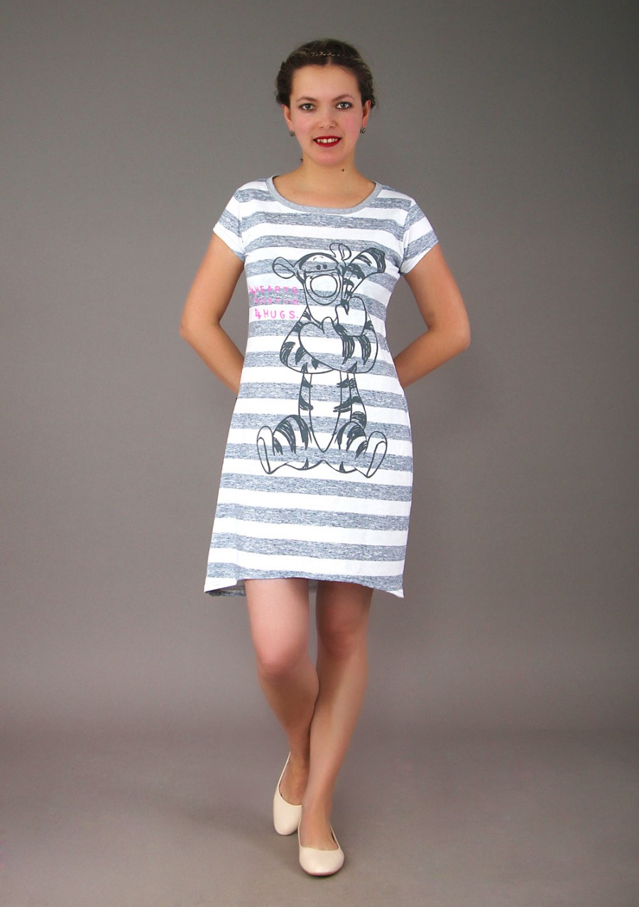 Легкое и воздушное платье с коротким рукавом "Тоня" отлично выглядит в расцветке "Полоса серый+белый" и придаст Вашему образу чуть-чуть утонченности и романтизма.