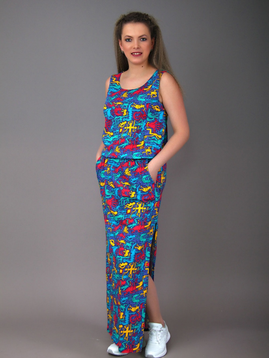Отличительной особенностью модели являются симметричные разрезы платья, которые уместно смотрятся на длине изделия и подчеркивают оригинальность товара.