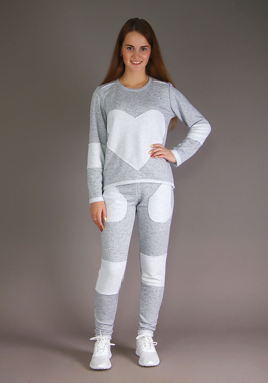 Безупречно качественный и оригинальный костюм для активного отдыха. Обо всём по порядку. Ткань обладает отличной плотностью и устойчивостью к износу, а также материал не сыпится и не вытягивается. Брюки с поясом на резинке обладают карманами и вставками на коленях и декоративными манжетами. Кофта прекрасно скроена, также оснащена манжетами и декоративными вставками но теперь на локтях. Особенностью данной модели является крупное нашивное сердце на груди. Прекрасный выбор для прохладной погоды.