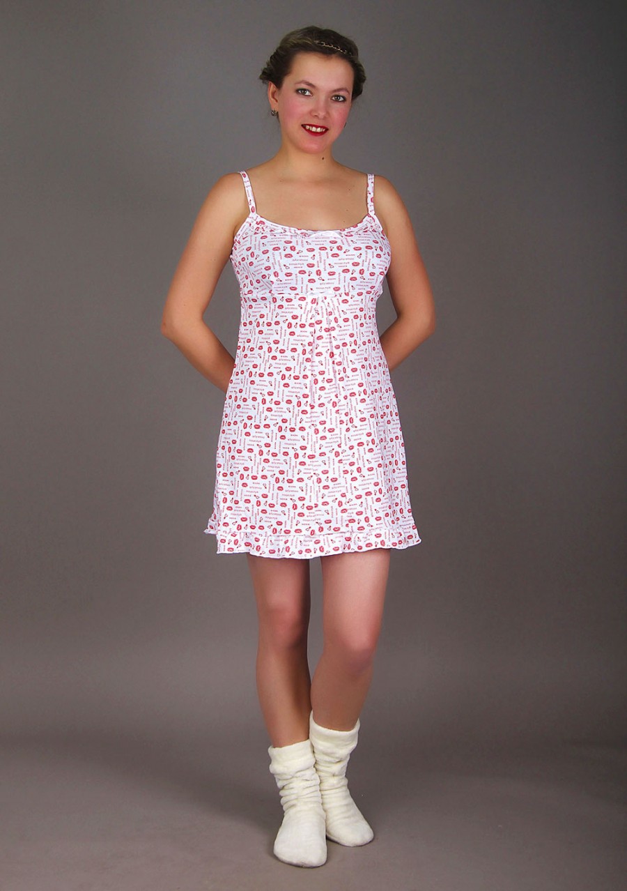 Очаровательная расцветка "Поцелуй меня" порадует Вас и Ваших близких. Тоненькие лямки и коротенький подол не стесняют движений и практически не чувствуются во время сна.