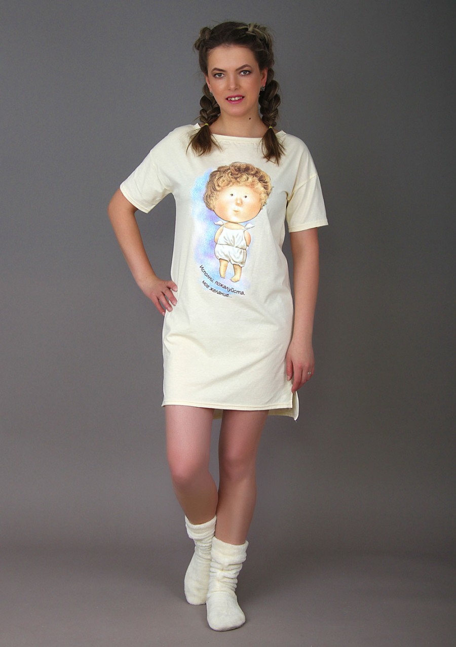 Новинка! Превосходная сорочка, которая может быть даже домашним стильным платьем! Модель "Даниэла" прямого кроя со слегка удлиненной спинкой. Смотрится просто прелестно! Окантованная широкая горловина отлично лежит на теле, подшитые рукава и подол аккуратно смотрятся. Принт "Ангел мальчик" не нуждается в комментировании - очарователен, мил и удивительно добродушен.