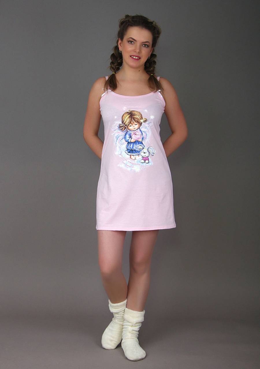 Наиочаровательнейшая сорочка на лямках украшена сказочным принтом и белыми атласными бантиками. Воздушная и легкая модель "Мини" для дам, ценящих свободу и простор.