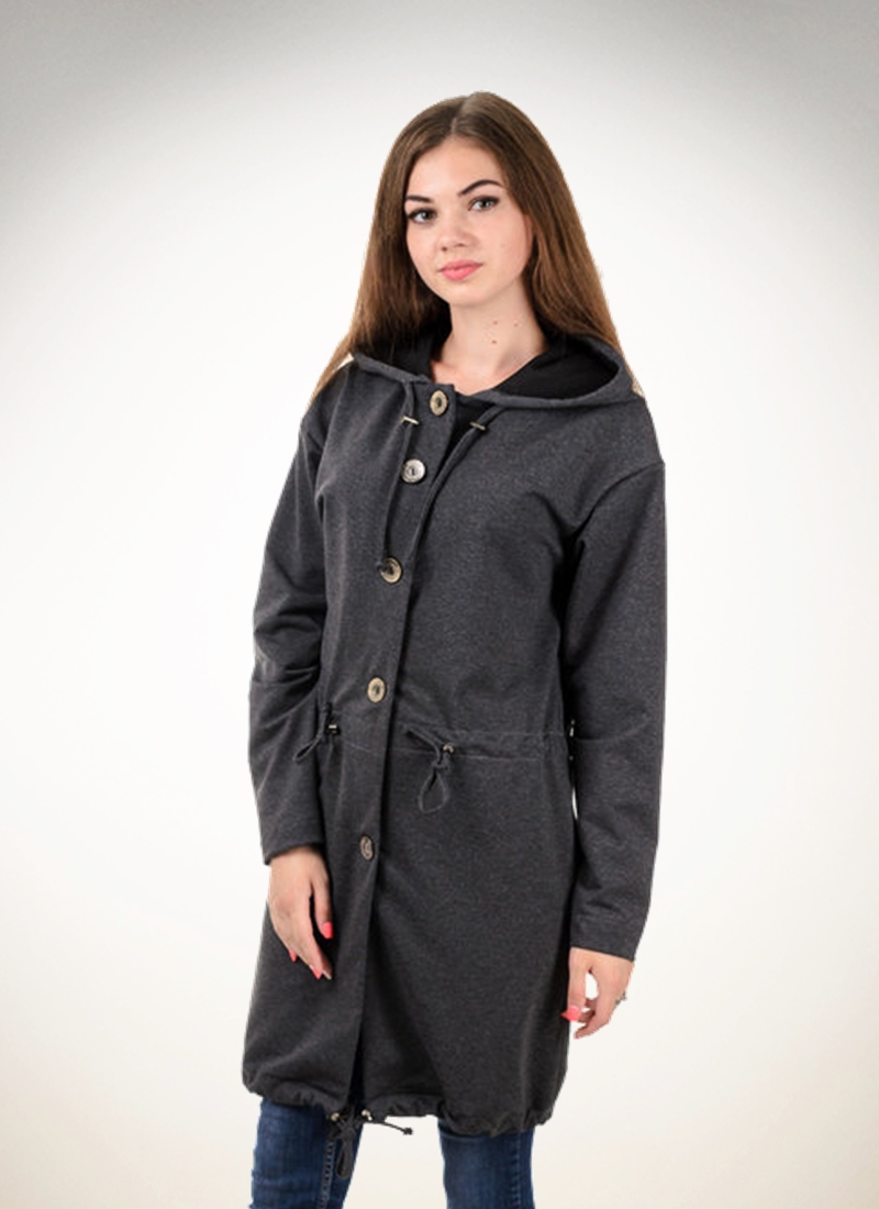 Кардиган KG07 Стильный свободный кардиган с капюшоном из мягкого трикотажа – для создания casual-комплектов. Длинные рукава, стягивающие кулиски. Застежка:пуговицы. Хорошо сочетается с джинсами , сникерами и брюками. Подходит для любого типа фигуры. Цвет: Темно-серый. Размеры 44 46 48 50