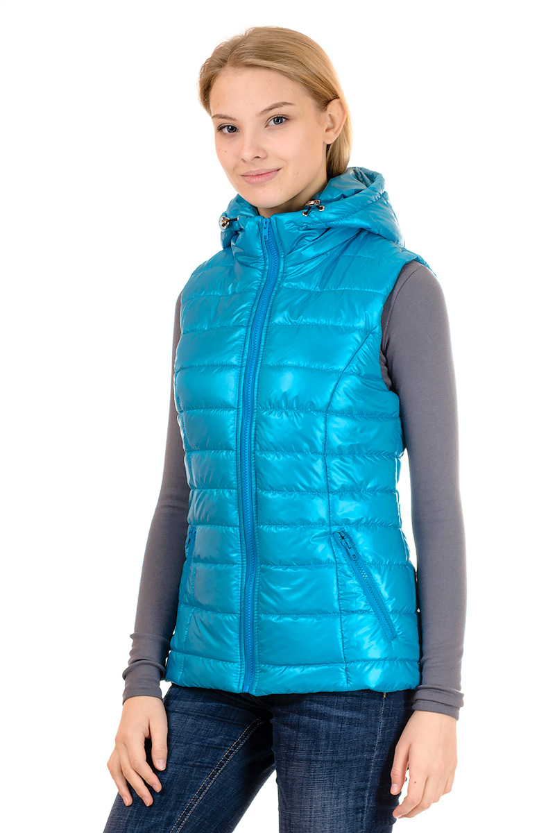 Жилет 805КА Удобный и модный предмет гардероба-Жилет,с капюшоном(не отстегивается). ткань:плащевка "ЛАКЕ", утеплитель силикон, подкладка принт нейлон р.44.46.48.50. Длина жилета: , 44р-62см, 46р-63см, 48р-65см, 50р-66см цвет:бирюза