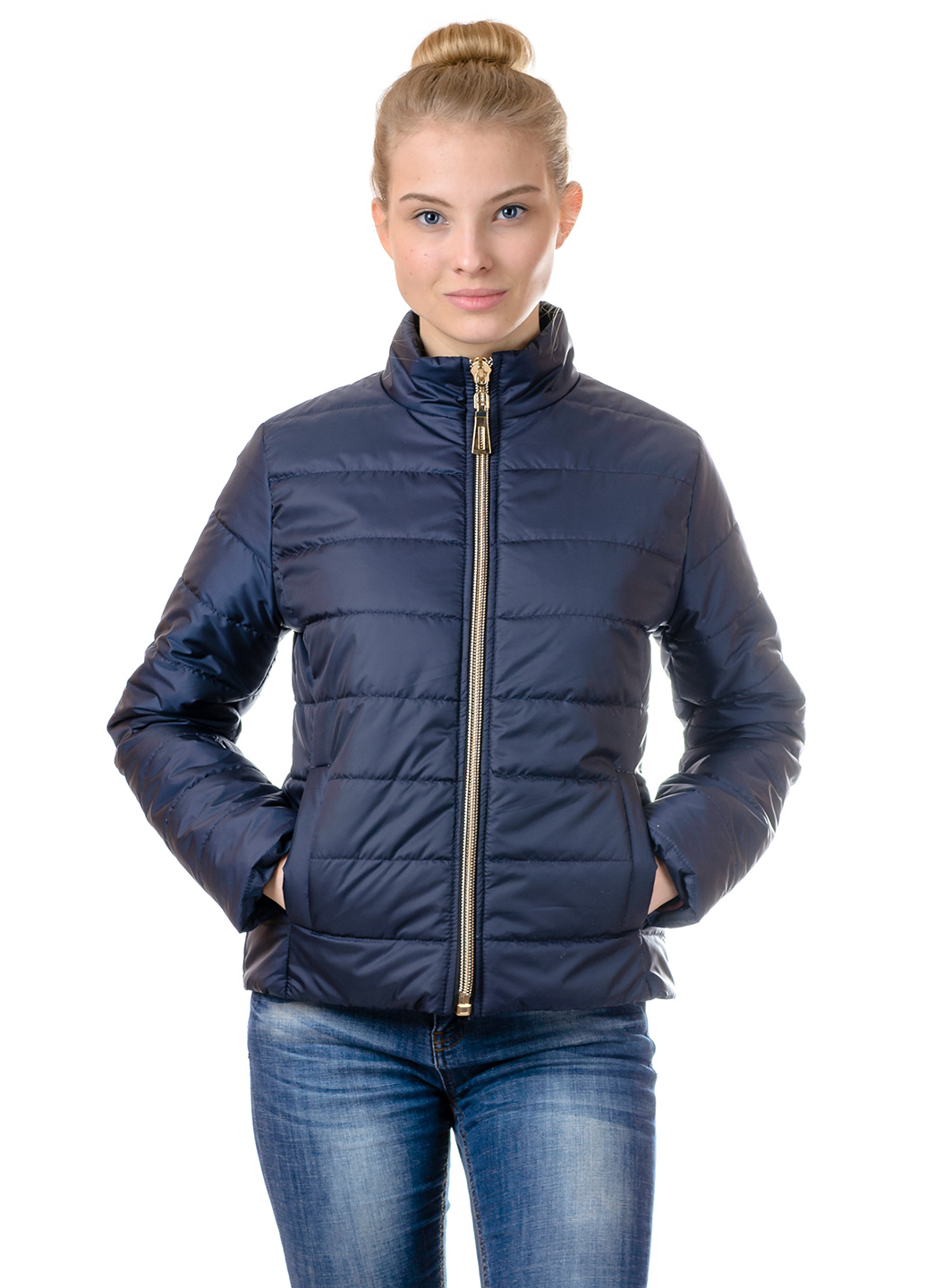 Стильная женская демисезонная куртка, утепленная на синтепоне на сезон осень-весна. Модель приталенного силуэта, красиво "садится" по фигуре. Застежка изделия - молния.ткань:плащевка р.42.44.46.48 цвет:синий