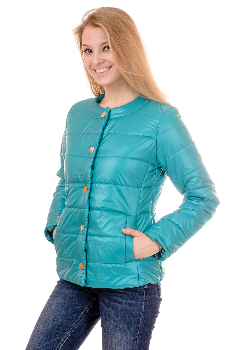 Куртка FK139 Удобная и легкая укороченная куртка- приталенного силуэта, удачно подчеркнет фигуру. Застежка -кнопки - Ткань:плащевка, наполнитель синтепон. р 44.46.48.50 цвет:Бирюзовый