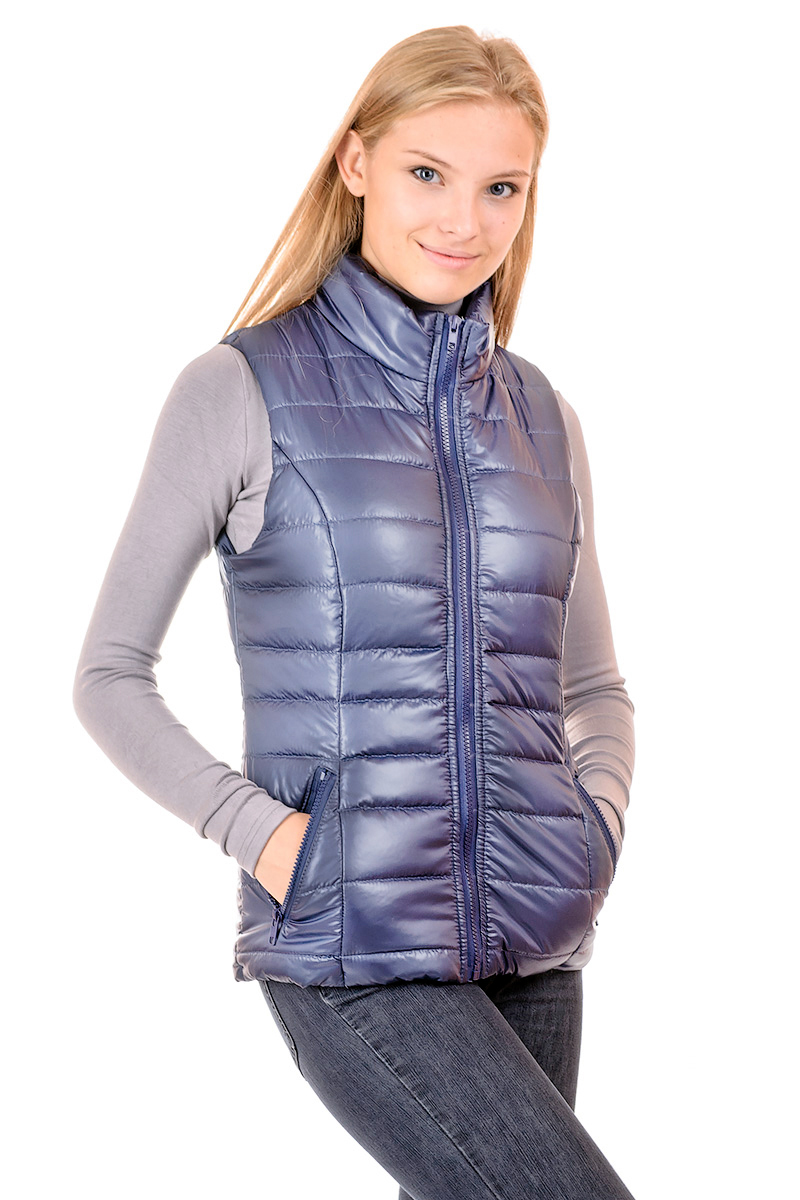 Жилет 808А Удобный и модный предмет гардероба-Жилет, без капюшона. Воротник-стойка .ткань:плащевка "ЛАКЕ", утеплитель силикон, подкладка принт нейлон р.44.46.48.50.52.54 Длина жилета: , 44р-62см, 46р-63см, 48р-65см, 50р-66см 52р-68см цвет: ДЖИНС