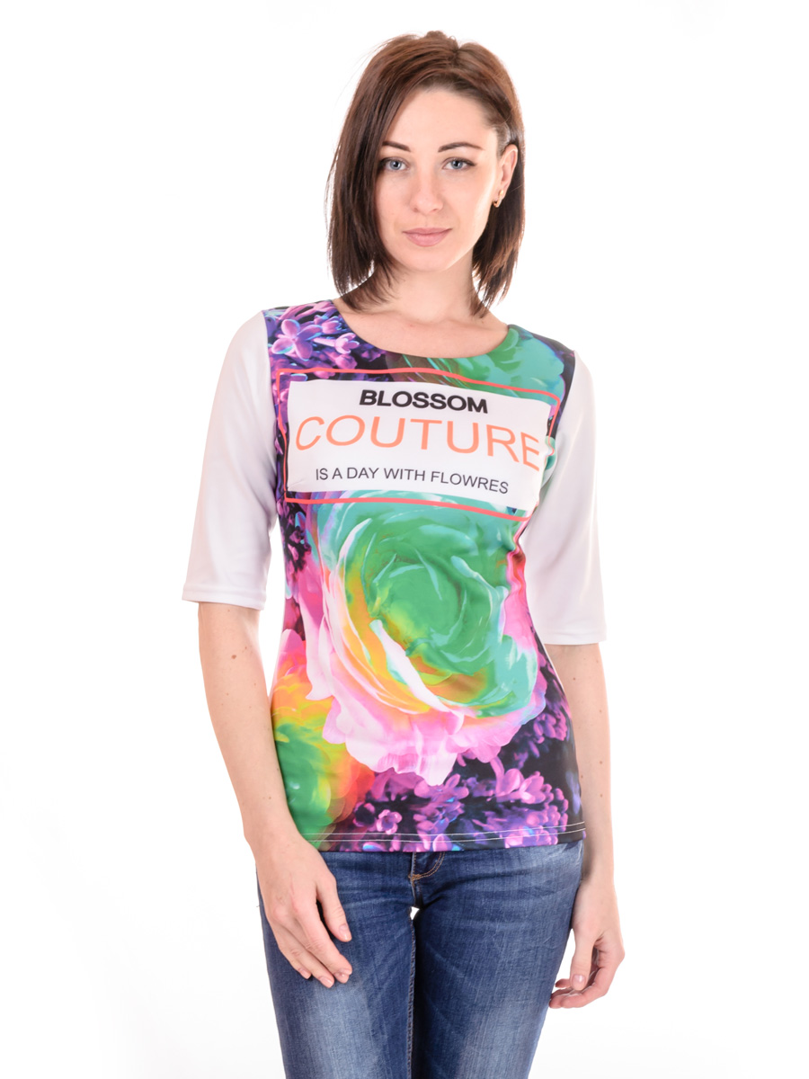 Кофта-футболка с коротким рукавом. Удобно использовать как отдельный предмет гардероба, так и в комплекте .Ткань-дайвинг: 45% вискоза, 30% полиэстер, 25% эластан РУКАВ: три четверти. Pазмер:.S,M,L Цвет:принт