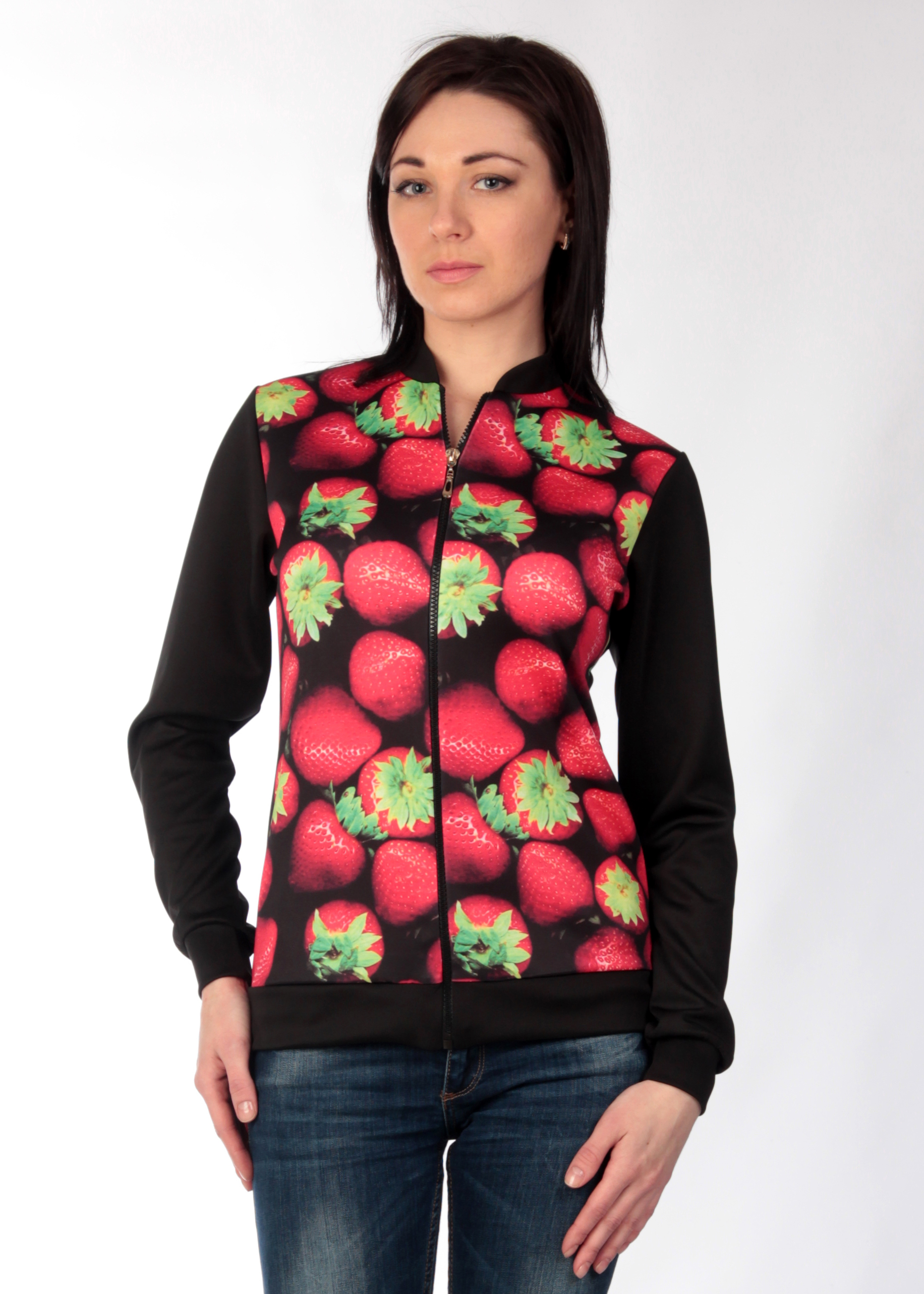 1701, ткань Дайвинг 45% вискоза, 30% полиэстер, 25% эластан . Длина кофты: 42р-64см, 44р-65см, 46р-66см, 48р-67см, 50р-68см 52р-69см Длина рукава: 42р-60,5см, 44р-61, 46р-61,5см, 48р-62см 50р-62,5см 52р-62,5 см удобный и модный бомбер! Застегивается на молнию, красивый принт 3д клубника