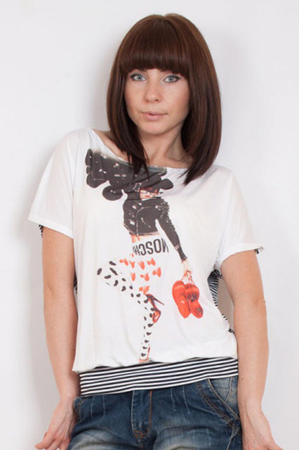 Футболка лодочка 1408. Стильная и удобная женская футболка с красивым принтом, в ней вы будете неотразимы! Ткань: масло. р.44.46.48.