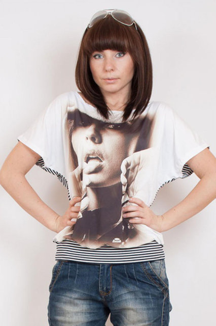 Футболка лодочка 1402. Стильная и удобная женская футболка с красивым принтом, в ней вы будете неотразимы! Ткань: масло. р.44.46.48.