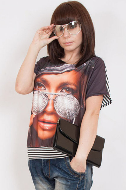 Футболка лодочка 1400. Стильная и удобная женская футболка с красивым принтом, в ней вы будете неотразимы! Ткань: масло. р.44.46.48.