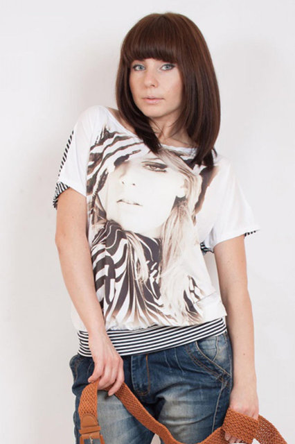 Футболка лодочка 1403. Стильная и удобная женская футболка с красивым принтом, в ней вы будете неотразимы! Ткань: масло. р.44.46.48.