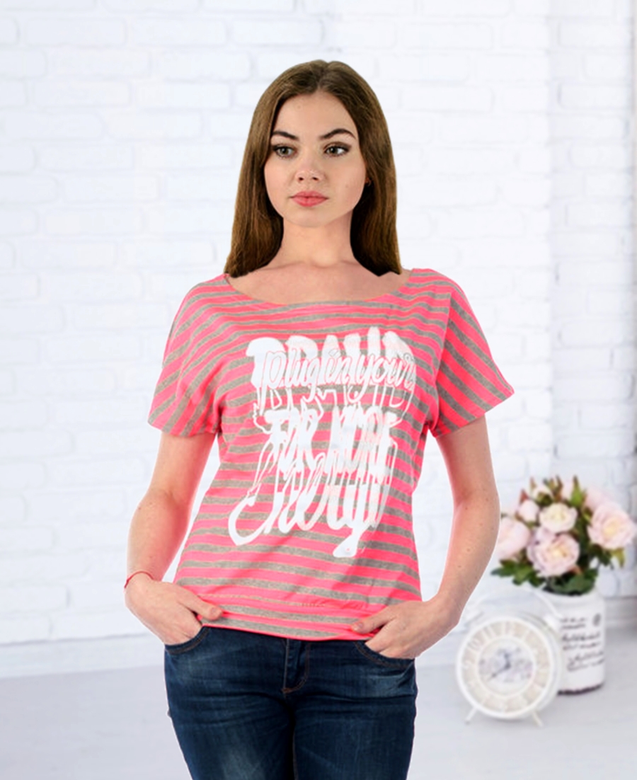 Женская футболка K4709 в полосочку. Отлично подойдет как под джинсы, брюки, так и под юбку. Ткань: вискоза. р.44.46.48