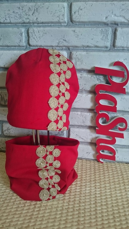 Комплект трикотажный двухслойный утепленный. Шапка и снуд