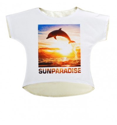 Летняя блузка от MODESTREET с яркими принтами! Перед блузы трикотаж с эксклюзивным дизайнерским принтом, спинка из легкого тонкого атласа ярких летних тонов.