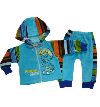 Велюровый костюм «Карапуз», детской марки MODESTREET, очень красивый и удобный, с полосатыми вставками и очаровательным принтом подарит много улыбок вашему малышу!