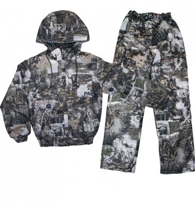 Костюм утепленный (термофайбер 100гр). Куртка укороченная с капюшоном и с верхними накладными карманами с клапанами и нижними врезными карманами под листочку. Манжеты и низ куртки выполнены на эластичной резинке. Брюки прямые имеют два боковых накладных кармана с клапанами и два кармана с боковым входом под листочку. Пояс на эластичной тесьме.