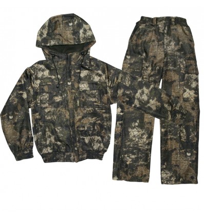 Костюм детский утепленный. Куртка укороченная с капюшоном и с верхними накладными карманами с клапанами и нижними врезными карманами под листочку. Манжеты и низ куртки выполнены на эластичной резинке. Брюки прямые имеют два боковых накладных кармана с клапанами и два кармана с боковым входом под листочку. Пояс на эластичной тесьме.