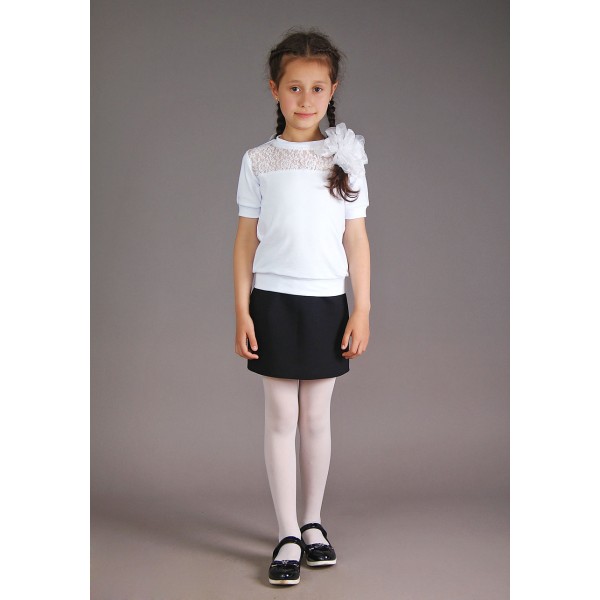 Еще один вариант водолазки для девочек. Комфортен и уютен при любом раскладе. Вставки из кружева не дают изделию выглядеть скучно, а ткань-основание интерлок-пенье позволяет ребенку чувствовать себя легко и свободно даже при активном образе жизни. Рукава на манжетах не меняют своего положения, а пояс прекрасно сидит на девчонке любой комплекции.