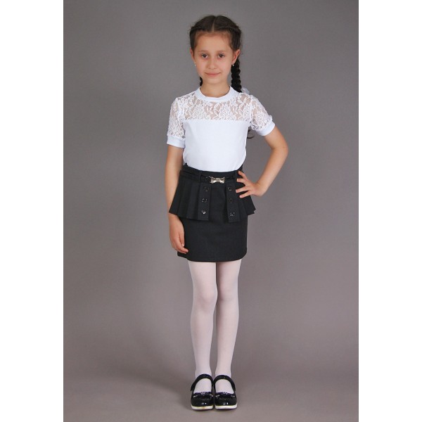 Уникальная водолазка для девочек с кружевной вставкой на груди. Изделие отличается наличием короткого рукава на манжетах, что безусловно огромный плюс для носки в тёплых помещениях или в жаркую погоду. Вещь отлично сидит на девчонках любой комплекции и прекрасно сочетается с абсолютно любым компаньоном - брюками, юбочками, строгими шортиками. Водолазку можно надеть как в школу, так и на прогулку, а также на любое ответственное или торжественное мероприятие.