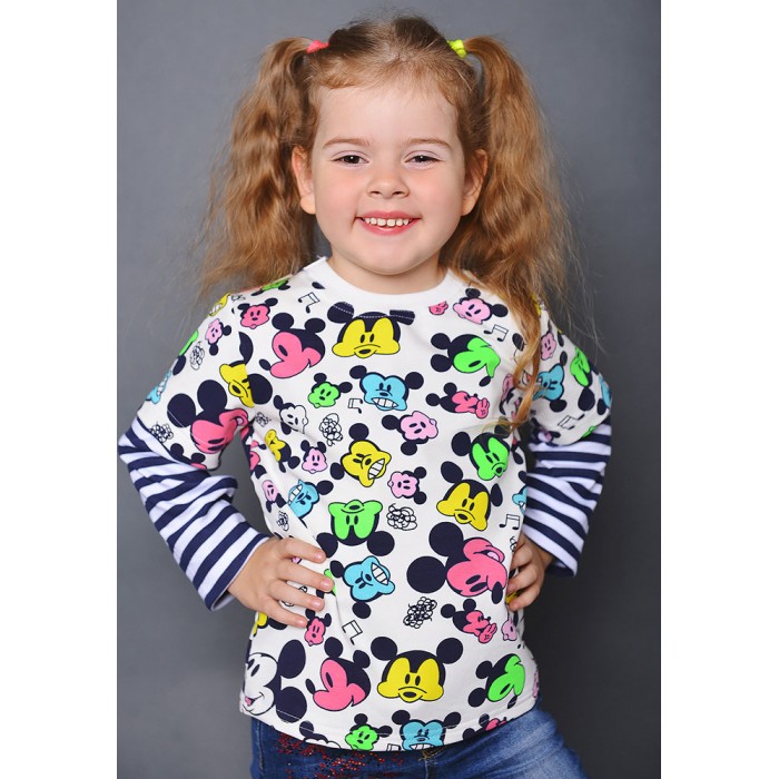 Прекрасная универсальная кофта для детишек, любящих активный образ жизни. Расцветка "Микки", двойной рукав и оригинальный цвет рукавов - отличное решение для выделяющихся деток.