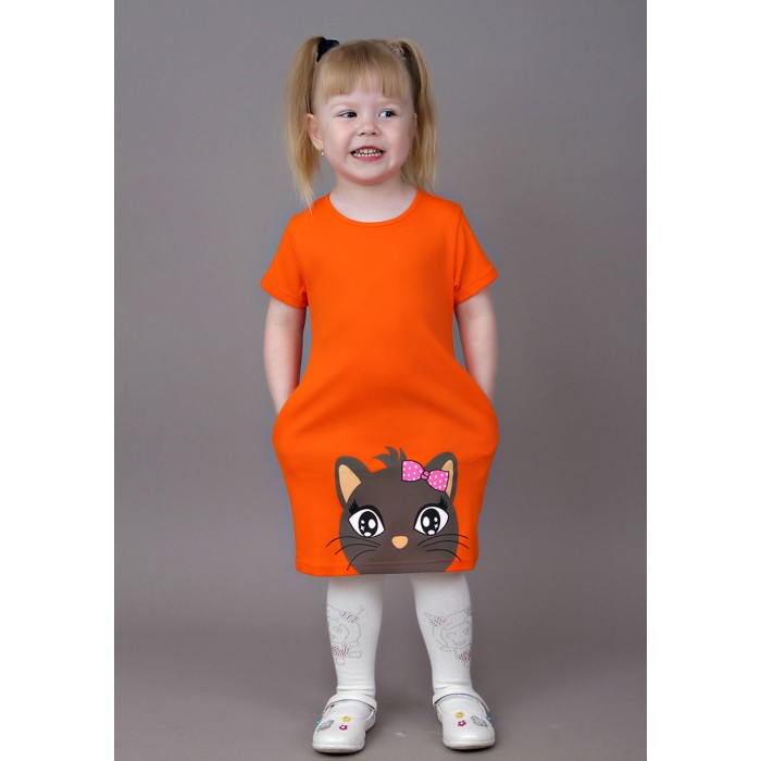 Восхитительное платье без рукавов для самых милых девочек. Модель приятна своей практичностью и яркостью – короткий рукав незаменим в летнюю жару; окантованная горловина не расползется и не деформируется; подшитый подол не мешает движению маленьких ножек; двусторонний (!) принт «Котик» радует глаз не только взрослого, но и малышки. Ткань интерлок-пенье, из которой изготовлено платье, гипоаллергенна и проста в уходе, а также мягка и приятна наощупь.